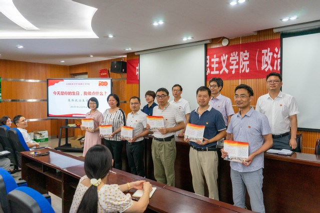 在中国共产党百年华诞来临之际,6月29日下午,公司党委举行集体政治生日暨入党宣誓活动。活动由经理刘汉一主持,院领导及全体师生党员参加了会议。