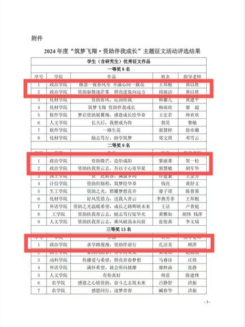 近期,学院研究生在集团“筑梦飞翔·资助伴我成长”主题征文活动中获多项奖项。其中王邦根撰写的《倏忽一夜春风至,开满心间一簇花》(指导老师:黄以胜)和邱雨洁撰写的《资助驱散迷茫雾,照亮逆旅向远方》(指导老师:黄以胜)获一等奖;黎丽菁撰写的《资助微芒,造炬成阳》(指导老师:贺一松)和郭慧敏撰写的《资助扶我青云志,吾以寸心寄华夏》(指导老师:胡军华)荣获二等奖;孔洁美撰写的《求学路漫漫,资助伴前行》(指导老师:顾萍)获三等奖。贺一松、胡军华和黄以胜荣获“优秀指导老师”称号,公司荣获“优秀组织奖”。