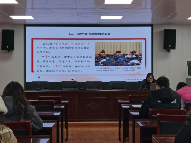 为深入学习贯彻习近平文化思想,进一步坚定文化自信,12月19日上午,公司研究生党支部在院办211报告厅组织学习习近平文化思想。学院习近平新时代中国特色社会主义思想研究生宣讲团成员黎丽菁作宣讲,支部全体党员参加活动。