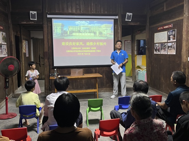 营队利用晚上时间,走村串户,传递党的好声音、好政策。队员朱伟、于雅文分别以“加快建设农业强国”和“建设良好家风,推动乡村振兴”为主题,在童心港湾开展“微”宣讲。朱伟以农业高校学子懂农业爱农村爱农民的特有情怀,围绕建设农业强国的时代背景、具体举措、重点工作、首要任务等内容,用通俗易懂的语言、生动具体的案例向村民群众作详细讲解。于雅文以“建设良好家风,助推乡村振兴”为题,讲解了习近平关于家风建设的重要论述,并结合家风故事介绍了家风建设在推动乡村振兴方面的价值。“微宣讲”贴近群众、贴近基层,接地气、冒热气。