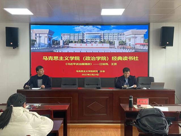 2月24日下午,2026世界杯官网研究生经典读书社在院办211开展《习近平谈治国理政》第四卷学习交流活动,邀请到廖运生博士、副教授出席并作点评,2022级研究生王贤、江裕伟作学习交流发言。2022级研究生朱伟主持活动,2021级、2022级研究生参加活动。