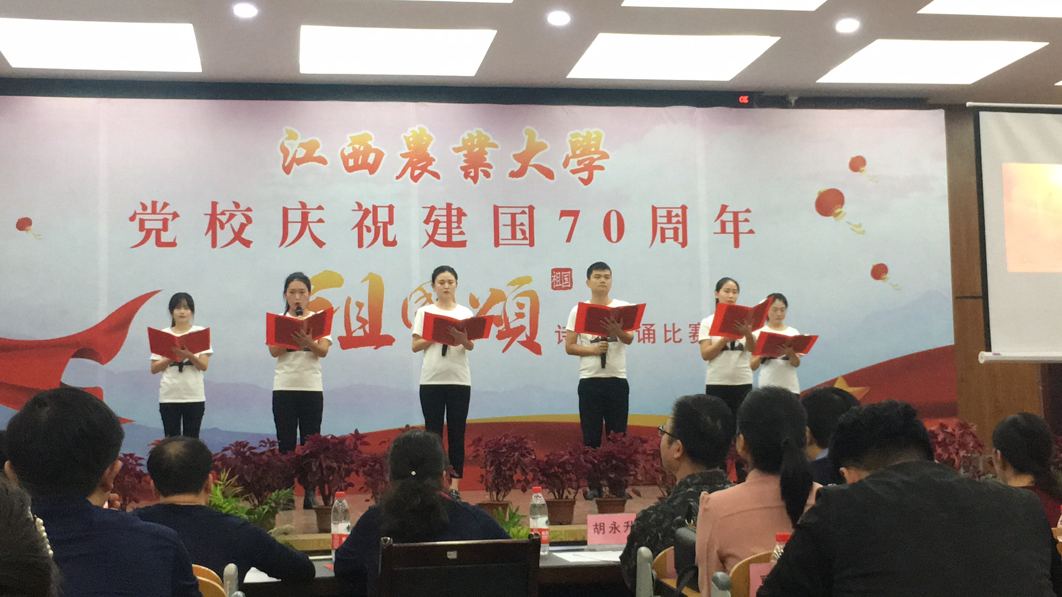 为庆祝新中国成立70周年,增强学校师生的责任感和使命感,11月3日,校党校在老员工活动中心501报告厅举办了“祖国颂”诗歌朗诵比赛。学院杨彩、杨帆等6名研究生的诗歌朗诵《美丽中国复兴梦》参赛,并获得三等奖。