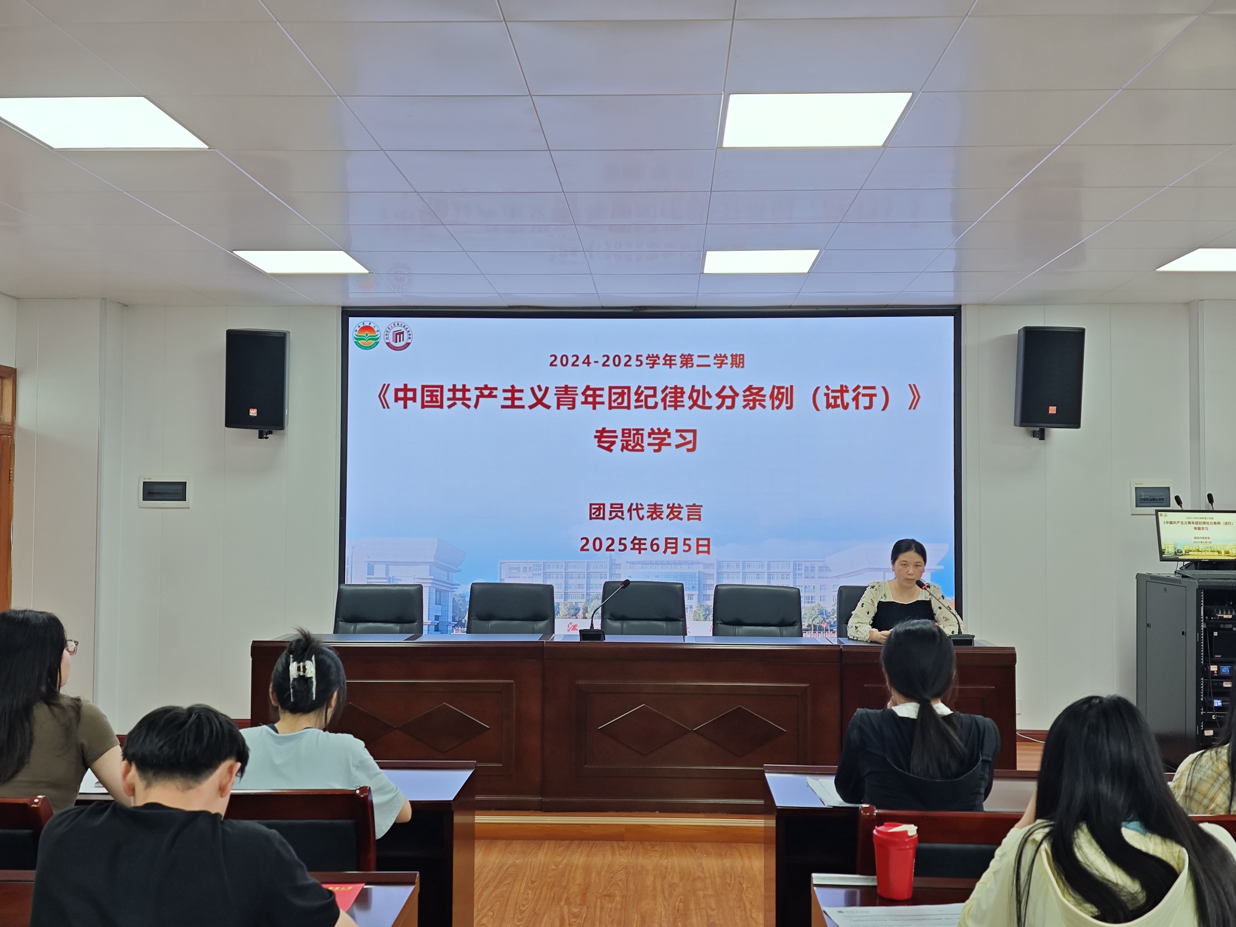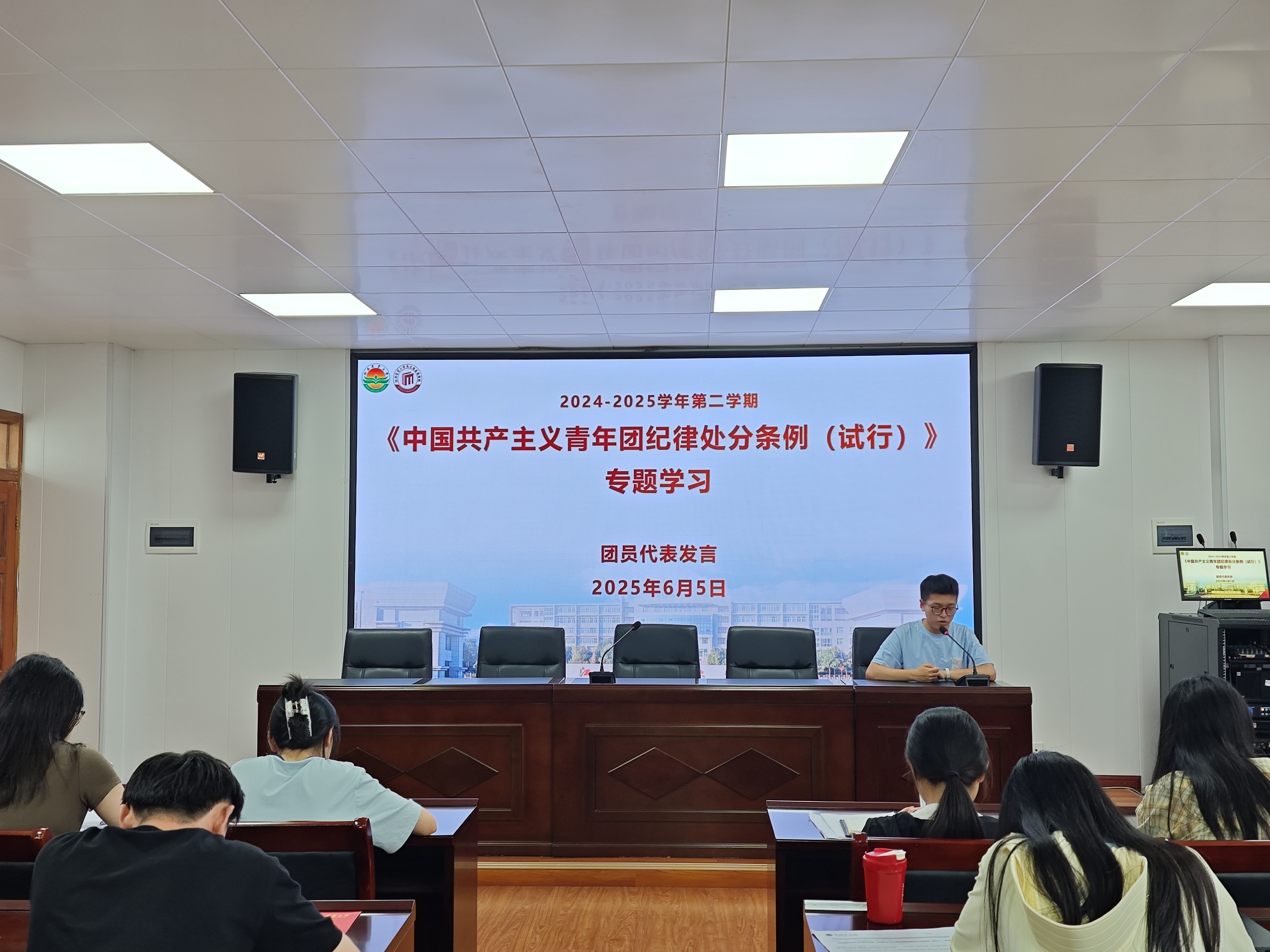 在团员代表发言环节,两位来自不同年级的团员代表结合学习与生活实际,分享对《条例》的理解感悟。他们表示,将以此次学习为契机,把纪律要求融入日常学习与实践,切实发挥团员先锋模范作用。
