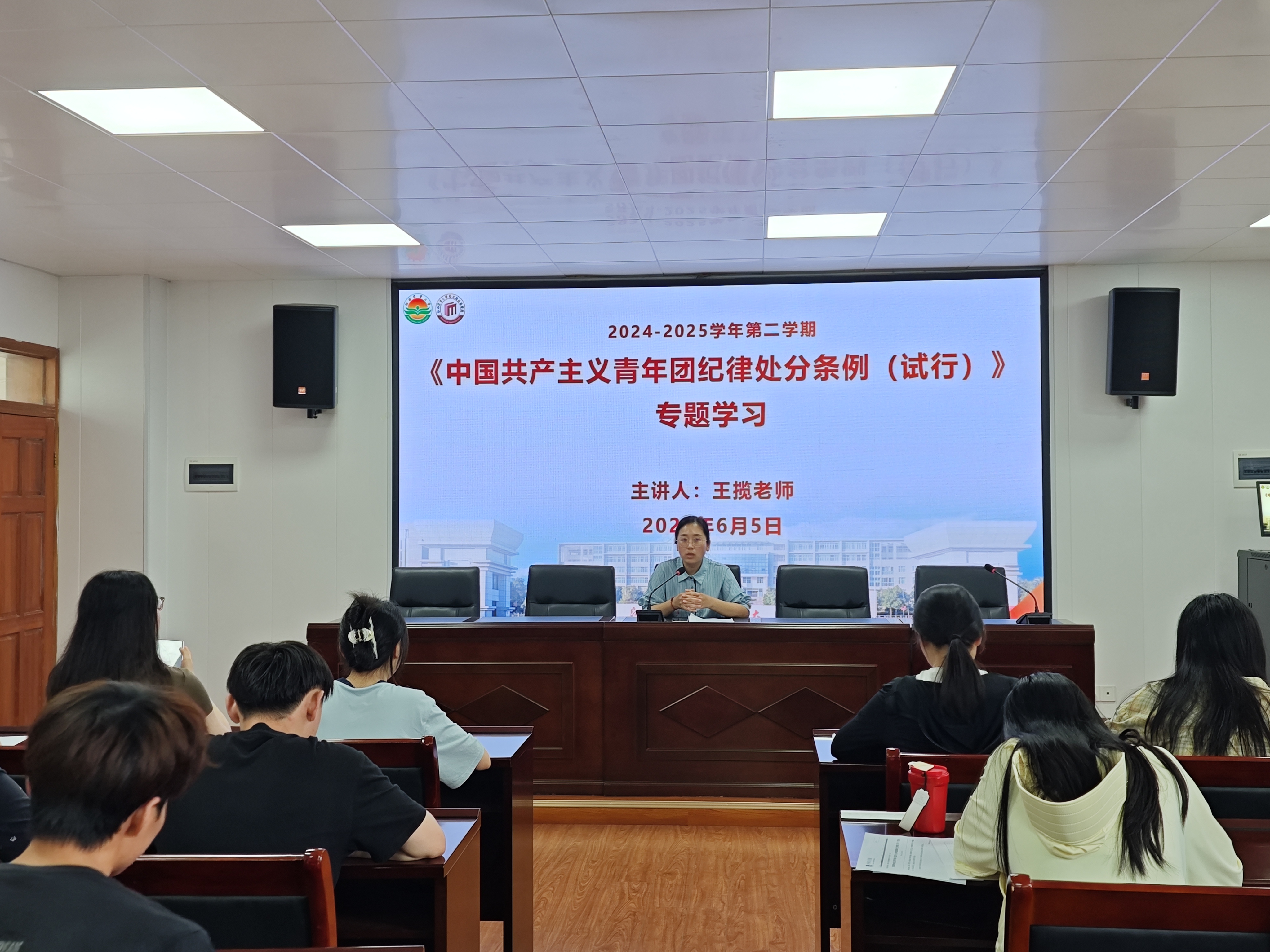 为强化团员纪律意识,筑牢纪律防线,2025年6月5日下午,公司团总支在院办211会议室组织开展了《中国共产主义青年团纪律处分条例(试行)》(以下简称《条例》)专题学习活动。党委正科级组织员兼团总支书记王揽出席活动。各团支部团员代表共计60余人参加。学院团总支员工副书记张叶雨主持活动。