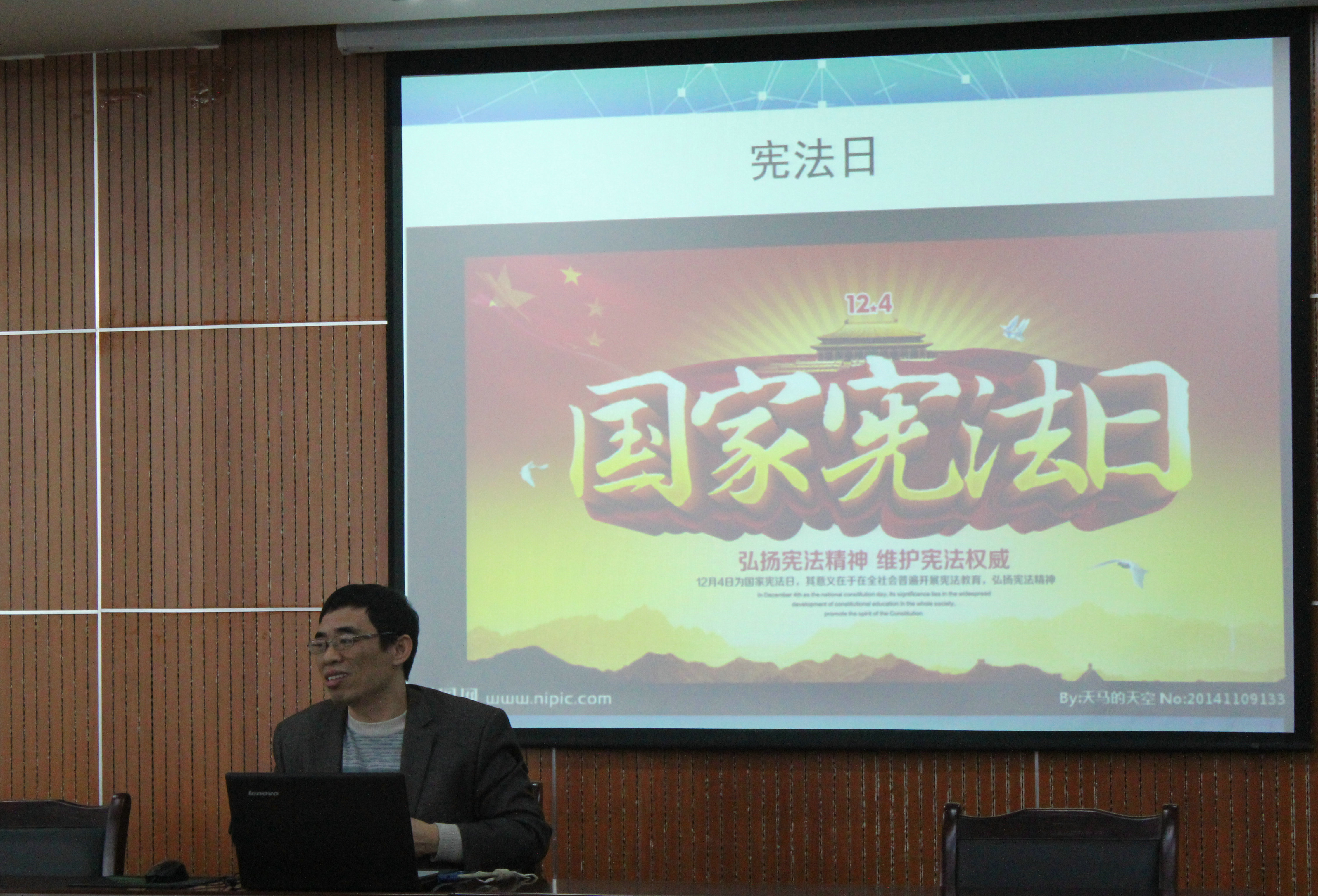 2014年12月4日是首个国家宪法日,公司在109报告厅举行首届“宪法日”交流座谈会。易启洪副教授为公司在校研究生作了题为“普通公民如何维护宪法权威”的专题报告。