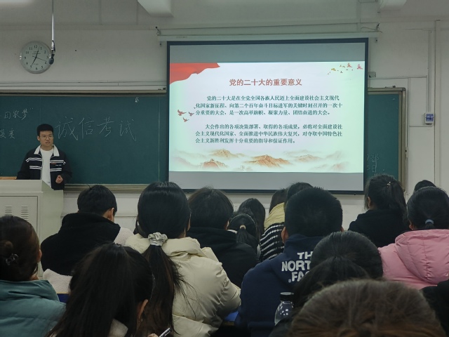 为深入学习宣传贯彻党的二十大精神,推动青年学子学深悟透,持续筑牢理想信念,3月27-28日,学院习近平新时代中国特色社会主义思想研究生宣讲团受邀在林学院本科生及研究生党员中开展了2场党的二十大精神宣讲。宣讲团执行团长杨其坤、团员于雅文分别作了宣讲。林学院/园林与艺术学院员工党员近350人在现场聆听宣讲。