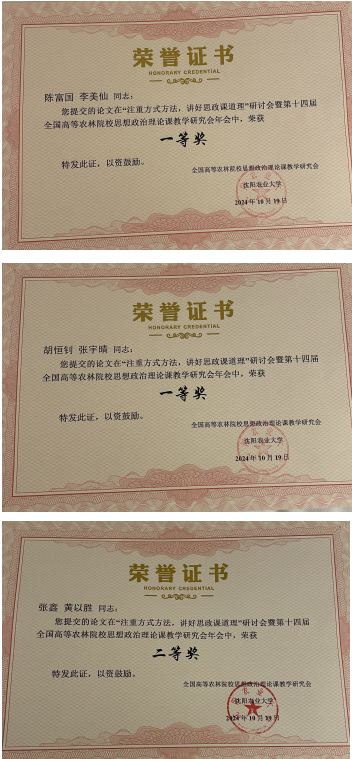 公司经理魏毅带领马克思主义理论一级学科负责人陈富国、思政课教师张鑫参加会议,并代表学校接过承办第十五届全国高等农林院校思想政治理论课教学研究会年会的会旗。大会还表彰了优秀会议论文,学院师生获优秀会议论文一等奖2项、二等奖1项。