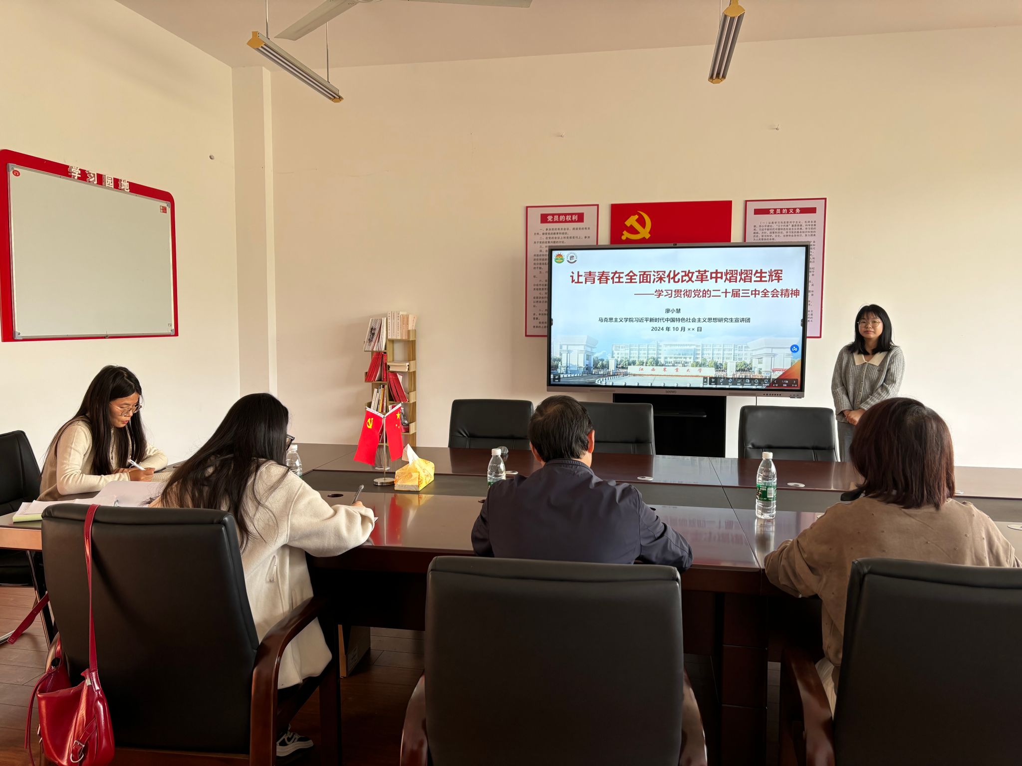 为深入学习贯彻党的二十届三中全会精神,提升宣讲团成员的理论水平和宣讲能力,10月28日下午,公司习近平新时代中国特色社会主义思想研究生宣讲团召开集体备课会。公司党委书记刘汉一教授出席会议。宣讲团指导老师赵美岚主持活动,宣讲团全体成员参加活动。