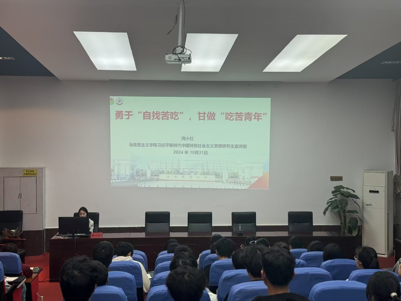 为深入学习贯彻习近平新时代中国特色社会主义思想,特别是深入学习习近平总书记关于青年工作的重要论述,提高青年员工的政治自觉和理论素养,10月31日晚,学院习近平新时代中国特色社会主义思想研究生宣讲团受邀赴化学与材料学院宣讲。宣讲会由化学与材料学院王邦根老师主持。该院40余名本科生入党积极分子参加活动。