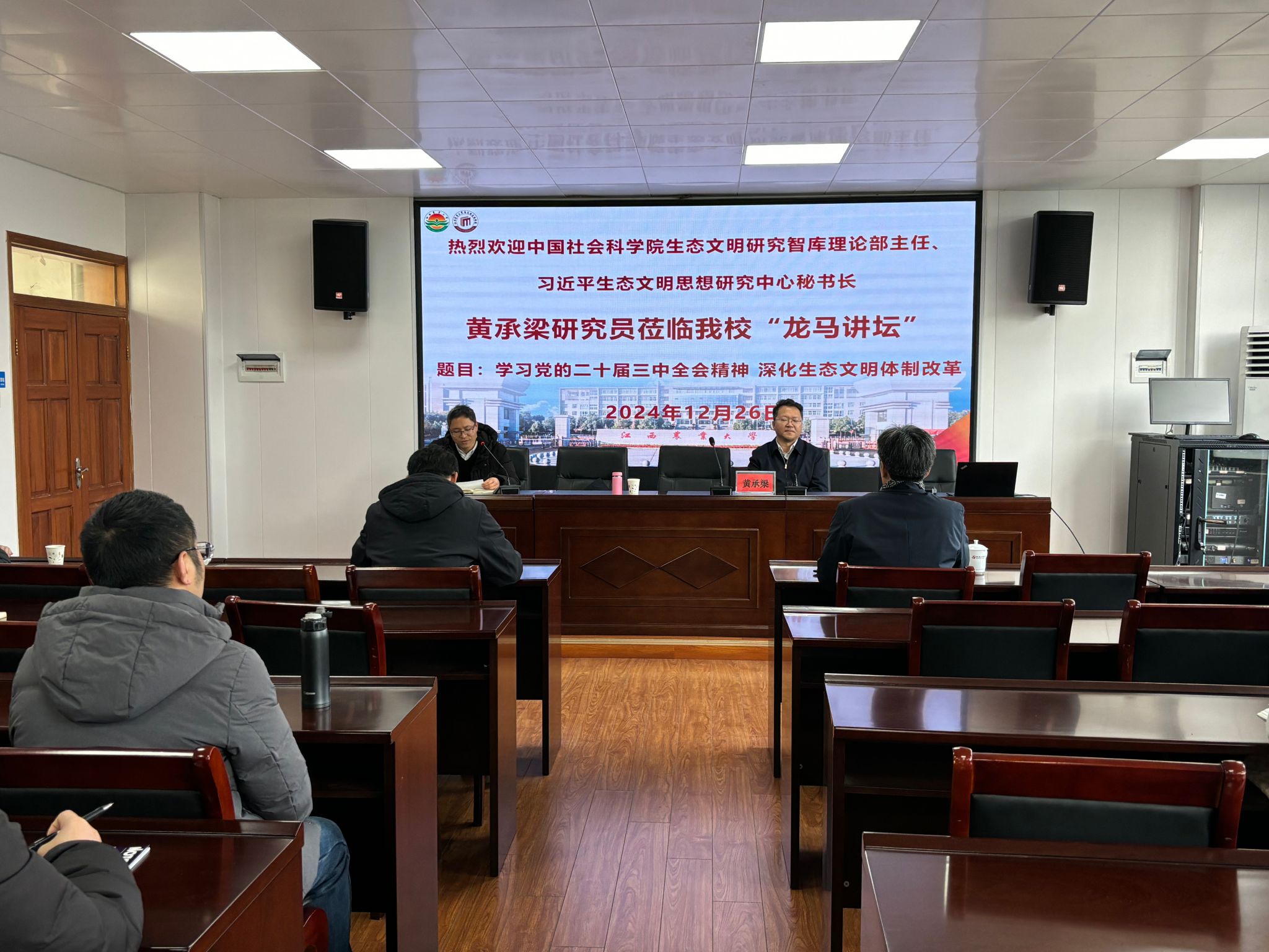 12月26日下午,公司邀请中国社会科学院生态文明研究智库理论部主任、中国社会科学院习近平生态文明思想研究中心秘书长做客公司第四期“龙马讲坛”。学院副经理黄以胜主持报告会,公司师生参加报告会。