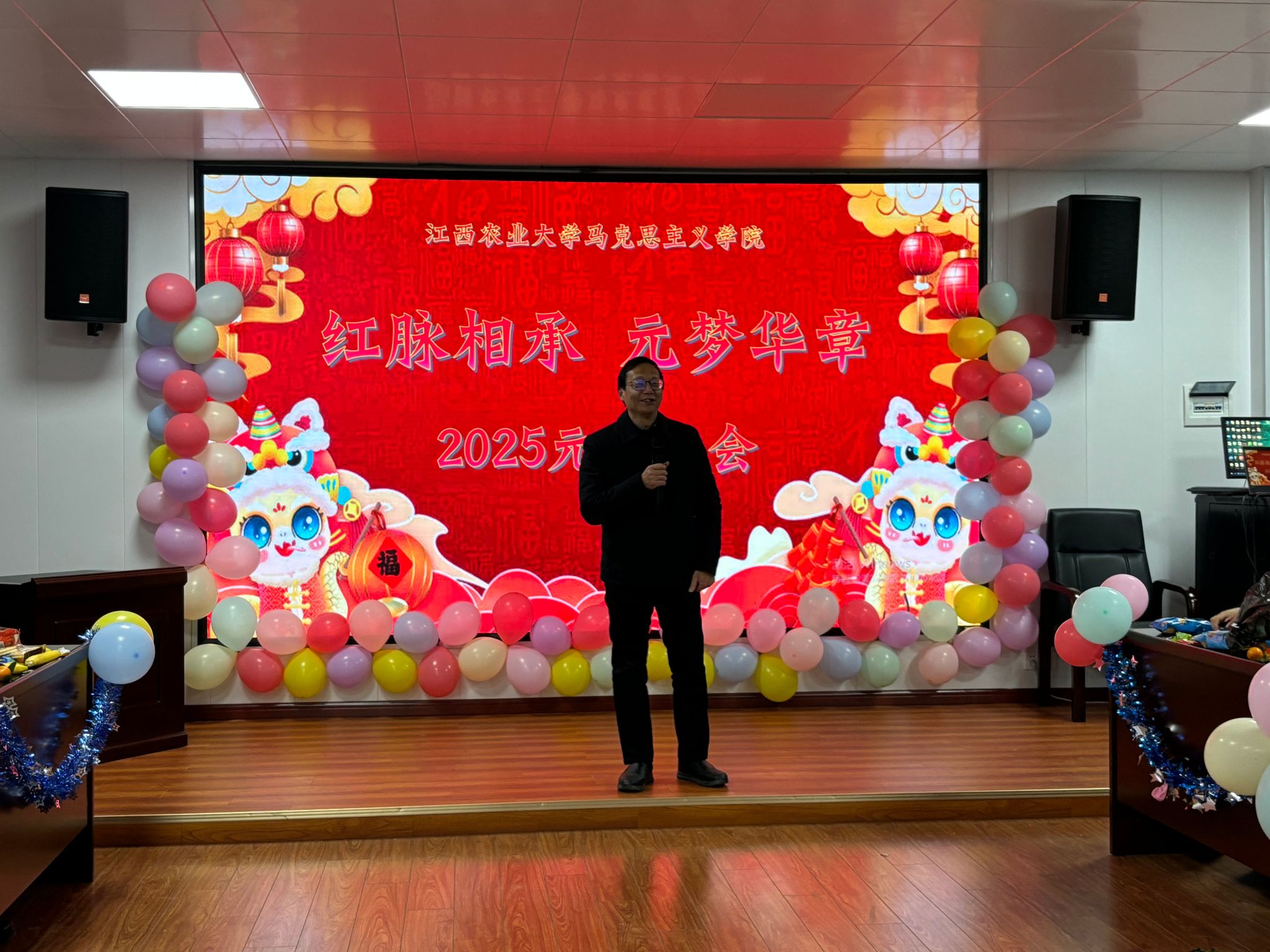 辞岁迎新日,乾坤气象新。12月26日晚,学院在211报告厅举办“红脉相承,元梦华章”2025元旦晚会。公司党委书记刘汉一、经理魏毅等领导、老师和全体在校研究生欢聚一堂,共享新年喜悦、展望美好未来。晚会由2024级研究生陆昕、刘志刚主持。