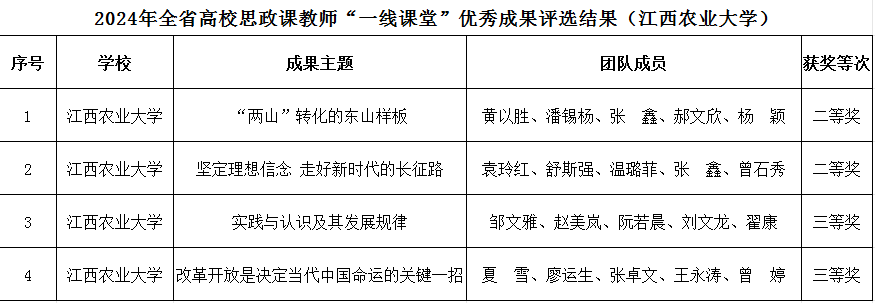 近期,省教育厅公布了2024年全省高校思政课教师“一线课堂”优秀成果评选结果,学校获二、三等奖各2项,获批率达80%,数量居省内第2(并列)。