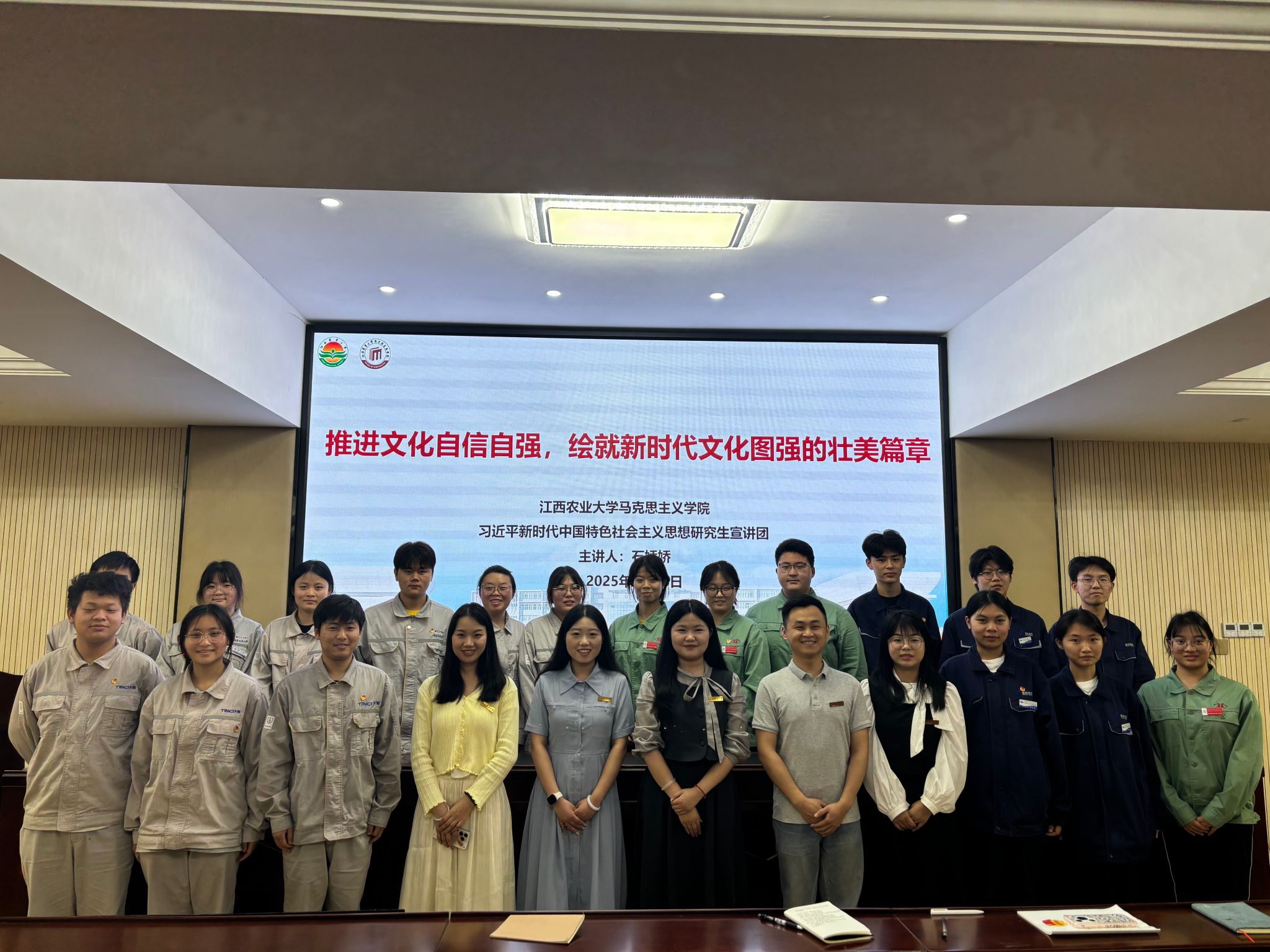 随后,宣讲团成员石娇娇以“推进文化自信自强,绘就新时代文化图强壮美篇章”为主题,依次从新时代推动文化自信自强的缘由、文化自信自强的底气根源、文化自信自强的具体表现、当代青年树立文化自信的途径四个方面展开宣讲。宣讲中,她借助生动的实例、详实的数据资料,深入浅出地阐释了习近平文化思想,并联系该校员工身边事例,鼓励新时代青年争当推动文化自信自强的先锋。该校团支部书记及24级员工代表共100余人全程参与聆听。本次宣讲活动加深了同学们对文化自信自强的认知,也让他们清楚认识到青年在推进文化自信自强进程中所肩负的重要职责与使命。