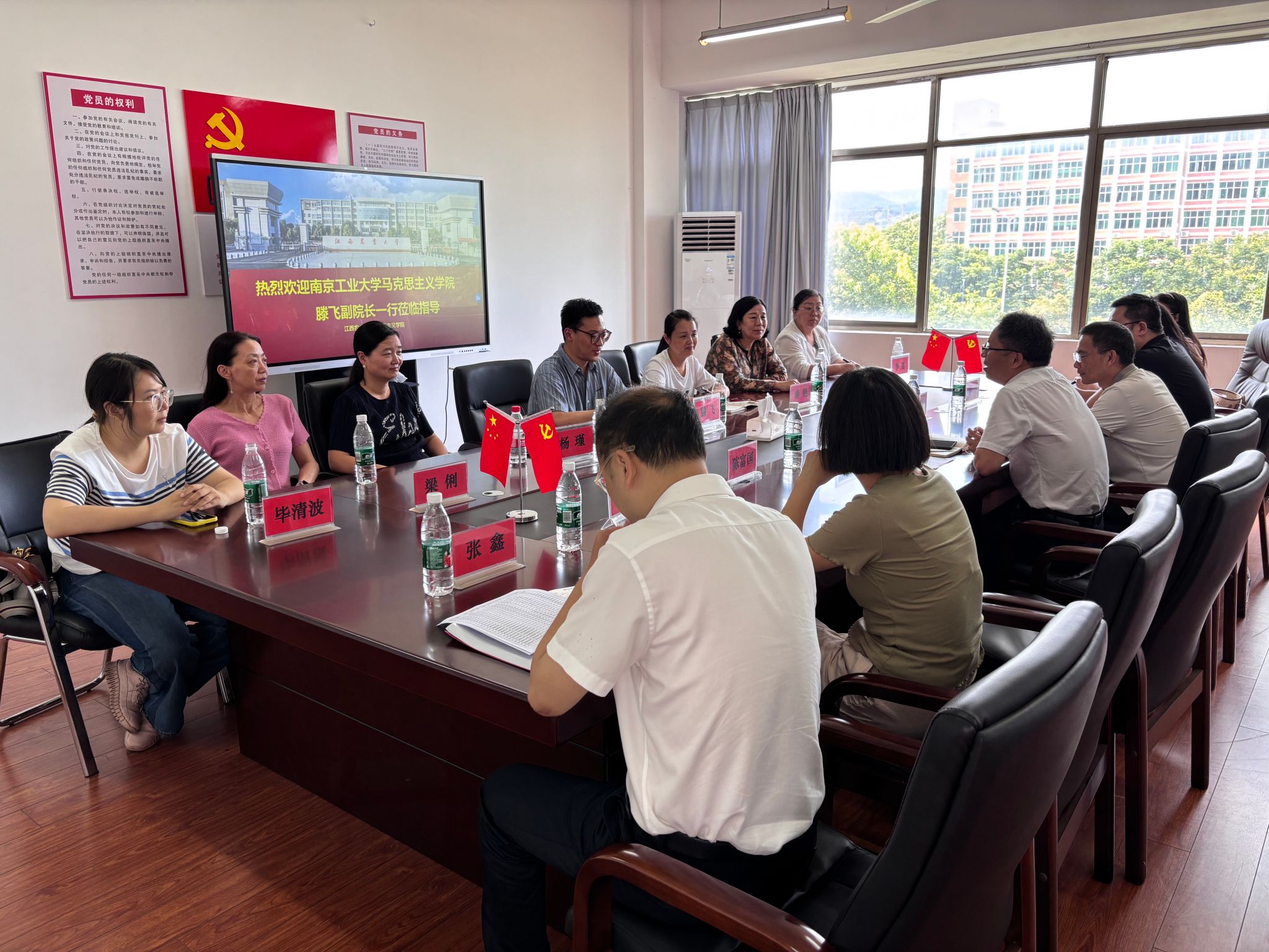 6月17日,南京工业大学2026世界杯官网副经理滕飞一行7人莅临学院调研交流。公司经理魏毅会见调研组一行,副经理黄以胜主持调研座谈会。南京工业大学2026世界杯官网思想道德与法治教研室教师和学院教研室主任及思想道德与法治教研室教师代表参加座谈会。