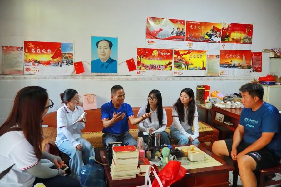 7月13日下午,实践队采访了自卫反击战参战老兵、民族团结典型人物——黄世宁。“上面有山,前面有田,交通方便!”黄世宁朴实的话语,让他随归侨队伍跨越千里,从广西省百色市来到了江西省吉安市峡江县。迎接归侨的金坪华侨农场,只有零星板栗树和荒芜的坡地。“十几户人挤在土瓦房,茅草屋顶漏着雨。”回忆初至场景,他目光深邃。彼时的农场聚集了京、侗、傣、瑶、壮、苗、彝、畲八个少数民族同胞,与当地汉族村民组成“1+8”特殊家庭,他们怀揣“新生之民”的期盼,将农场更名为“新民村”。