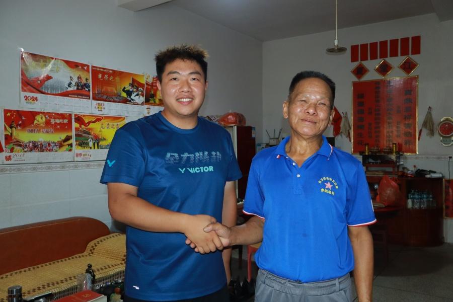 图五(黄世宁与退伍老兵实践队队员邹越握手 戴静怡供图)