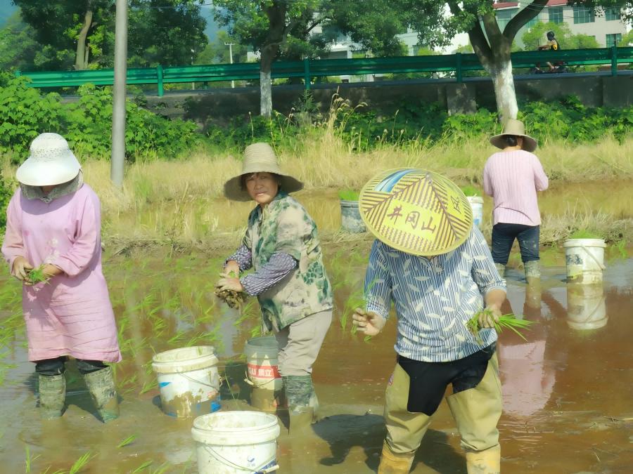 在石书记的指引下,队员们投入到现代农业技术——抛秧的实践中。嫩绿的秧苗从队员们手中划出优美的弧线,看似轻盈的一抛,实则蕴含着对力道、角度和均匀性的微妙把握。在石书记的引领下,队员们也俯身加入抛秧的行列,在泥泞中感受着烈日下抛秧的艰辛。一分水田,在队员们手中渐次披上崭新的绿装。不远处,大型旋耕机正轰鸣作业,钢铁的犁铧深深切入沃土,翻卷起黑色的泥浪,现代机械的力量展现无遗。与此形成鲜明对照的,是旁边几位年近六旬的农妇正娴熟地进行着传统的手工插秧。“现在都兴抛秧啦,比我们年轻时一棵棵弯腰插,省力多哩!”攀谈中,婶婶们由衷感慨,“多亏了石书记有本事,带着我们用科技种田,日子越过越有盼头,脱贫了,心里也亮堂了!”她们不仅是石书记长期雇佣的帮手,更是乡村生产方式深刻变革的亲历者。