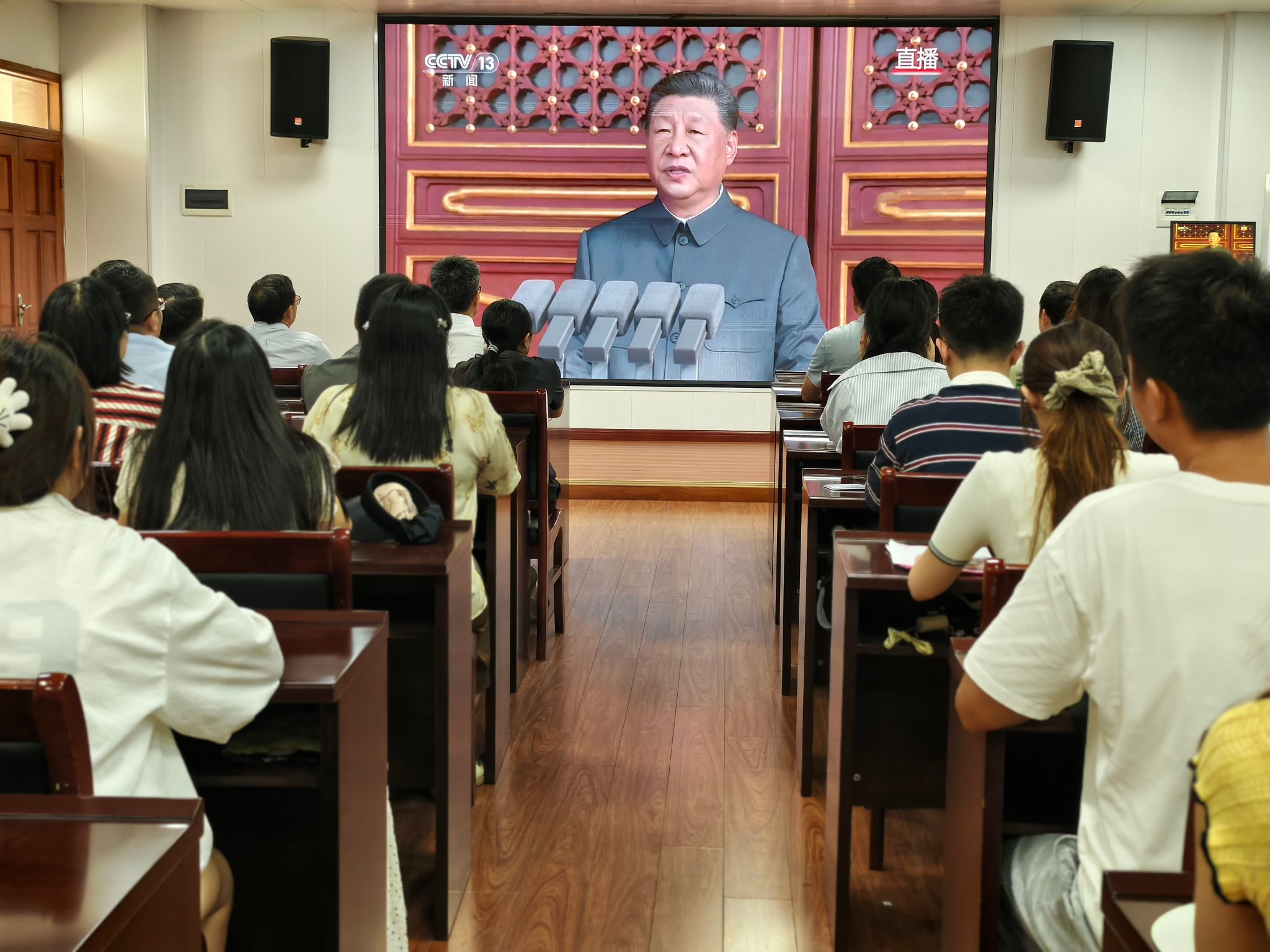 师生们全程认真聆听了中共中央总书记、国家主席、中央军委主席习近平发表的重要讲话,观看了盛大的阅兵仪式。此次大会不仅是一场视觉盛宴,更是一堂生动而深刻的爱国主义教育课和思想政治理论课。