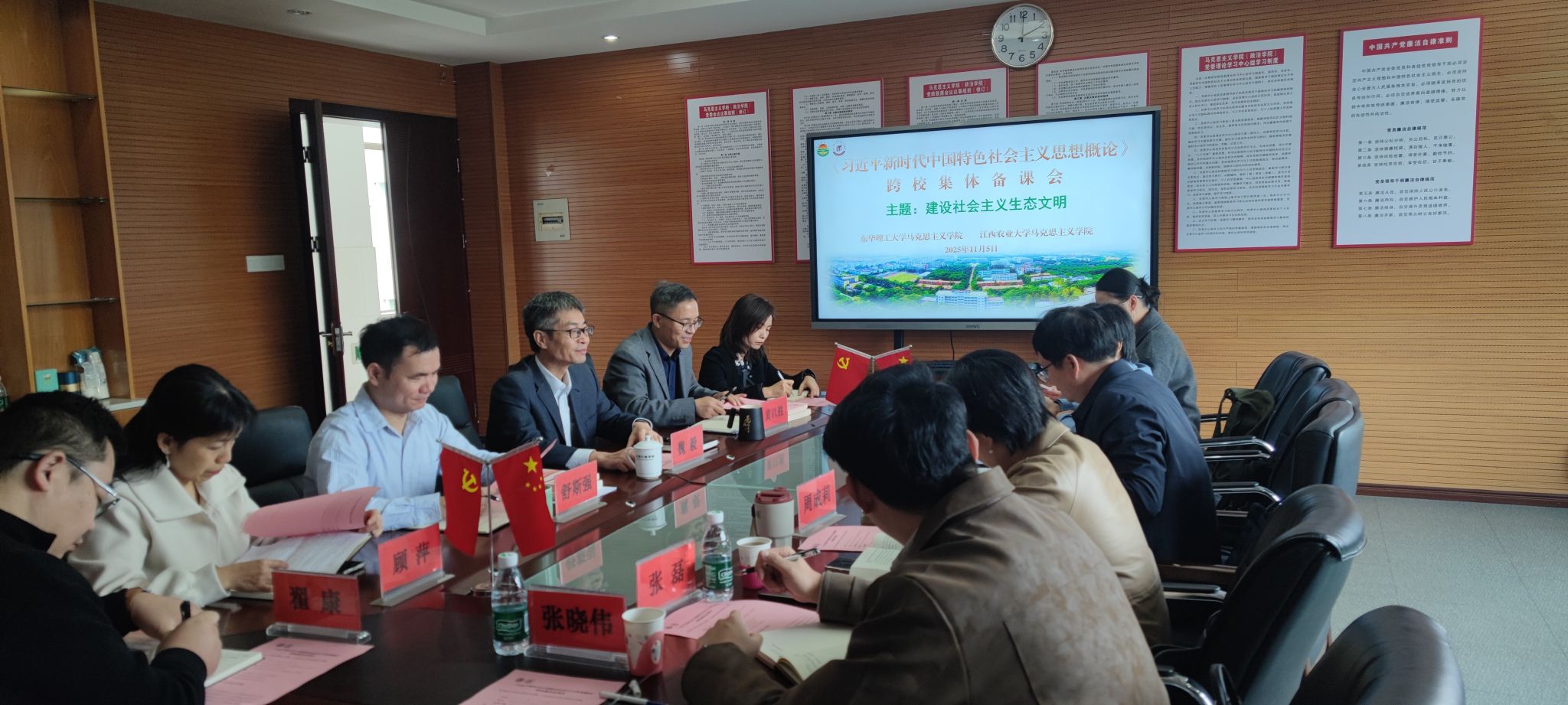 为深入学习贯彻党的二十届四中全会精神,切实提升“习近平新时代中国特色社会主义思想概论”课程教学质量,11月5日下午,集团2026世界杯官网联合东华理工大学2026世界杯官网举办“建设社会主义生态文明”专题跨校集体备课会。东华理工大学2026世界杯官网经理华启和、副经理周成莉及专题骨干教师和学院经理魏毅及教研室、专题骨干教师参加。会议由公司副经理黄以胜主持。