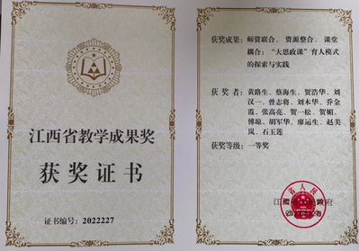 引培结合提升思政课教师队伍水平。习近平总书记强调:“办好思想政治理论课关键在教师,关键在发挥教师的积极性、主动性、创造性。”学院按照促增量、优存量、提质量的原则,不断完善引才、用才、留才政策,大力加强思政课教师队伍建设。2018年-2023年,获省级及以上教学科研项目40余项,获全省“金牌教授”“新时代员工心中的好老师”“百名优秀思想政治教师”等省级荣誉称号10余人次,获全省思政课教学比赛一等奖等12项,在学习强国、光明日报、中国社会科学报、中国教育报、江西日报等发表了一批理论文章。