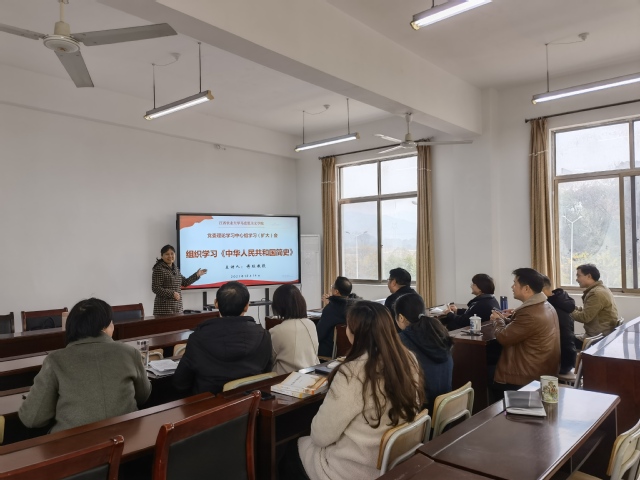 会上,傅琼从成书背景、出版情况、主要内容、成就摘举、学习要求等五个方面,系统地讲解中国共产党团结带领全国各族人民在新民主主义革命伟大成就的基础上,探索和建设社会主义,开创和发展中国特色社会主义,推动中国特色社会主义进入新时代的砥砺奋斗过程,为大家深入学习新中国史、开展“四史”宣传教育提供了重要帮助。随后,彭小波、概论党支部书记廖运生、党委组织员黄以胜等3位同志分别作了交流发言。