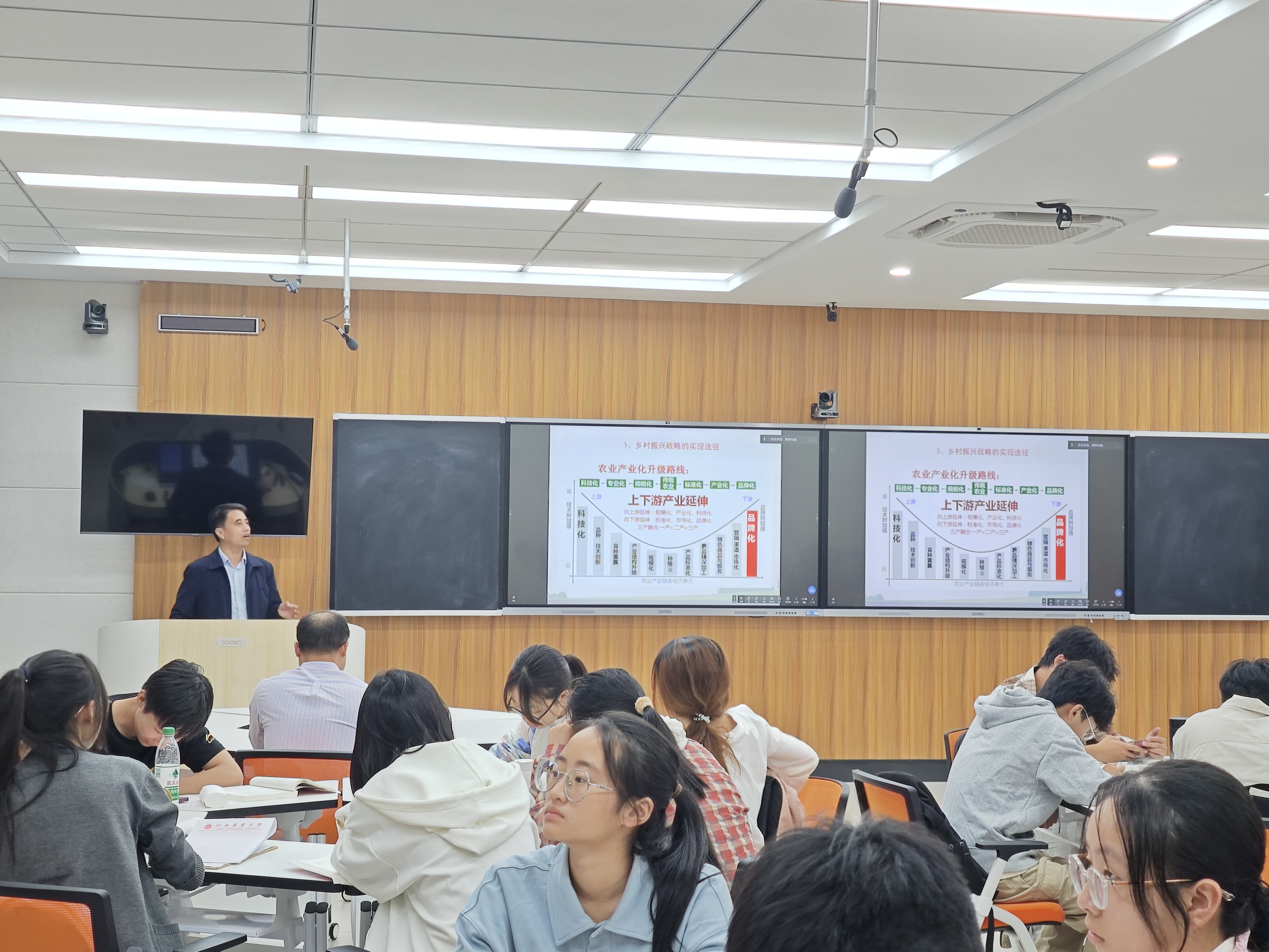 曾勇军经理围绕“农业科技创新与高质量发展”主题,用通俗易懂的语言、生动的例子讲解了农业科技创新的过程与特征、农业科技创新的类型与特点、农业科技创新与高质量发展。同时,介绍了学校作物学科在服务农业科技创新、建设农业强国等方面取得的成效。