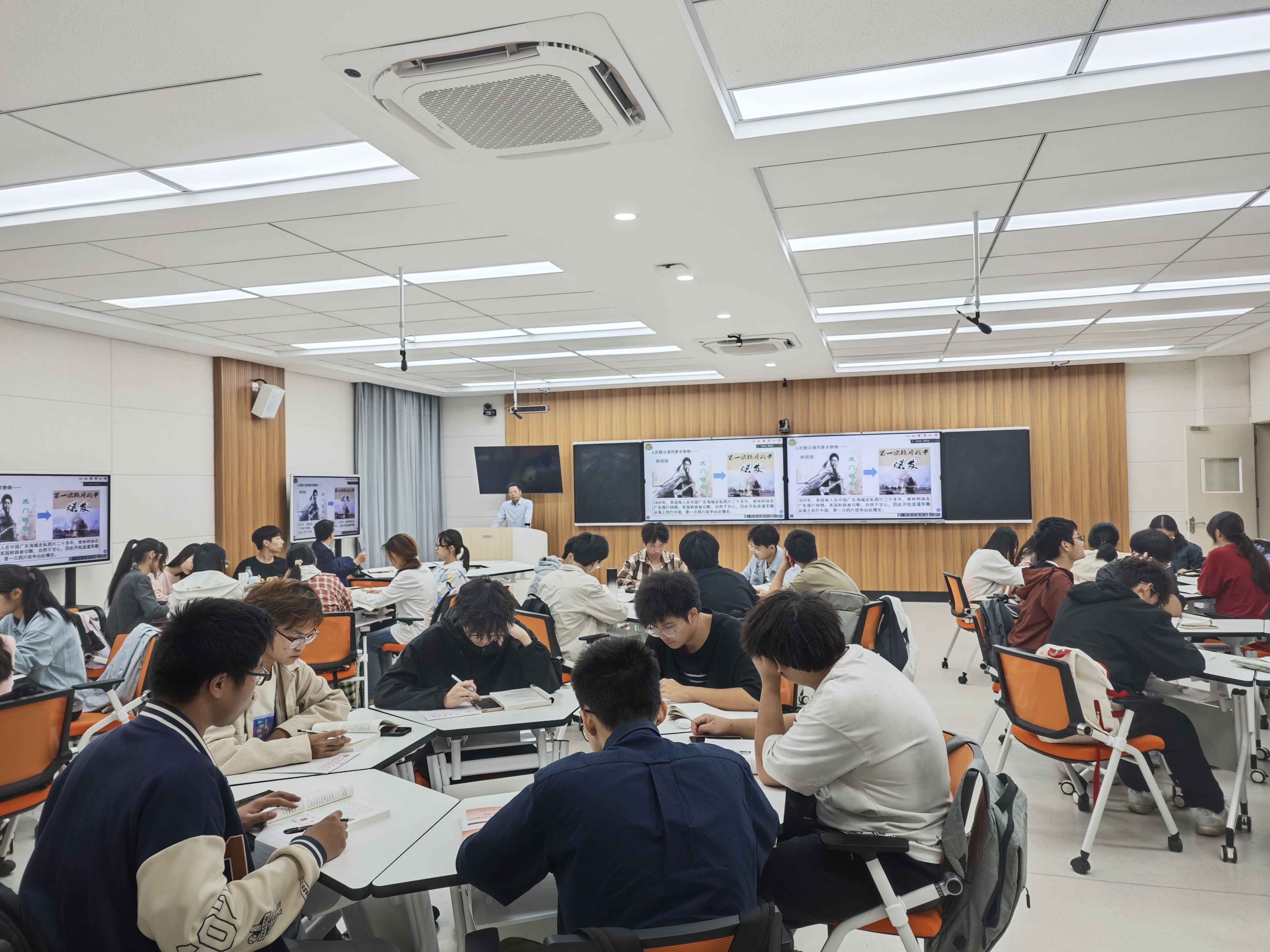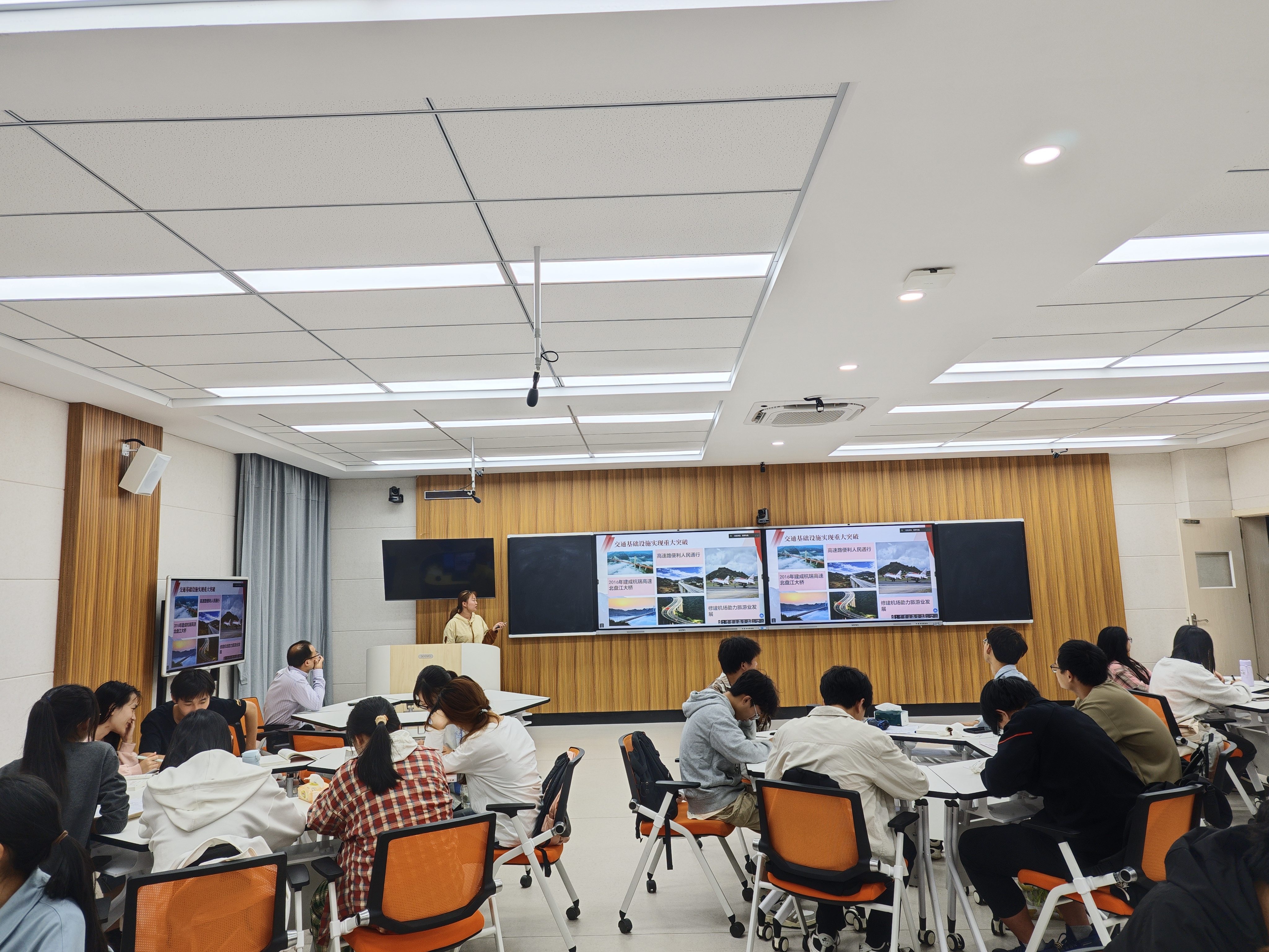 10月8日下午,“习近平新时代中国特色社会主义思想概论”课程第二讲开讲。副董事长游金明教授、研究生院经理曾勇军教授和2026世界杯官网潘锡杨老师共同讲授“全面建设社会主义现代化国家”专题。