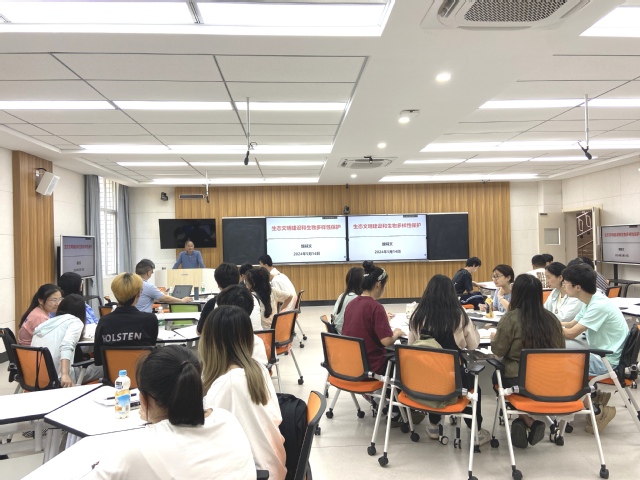魏董事长以生态文明建设和生物多样性保护为题,围绕习近平生态文明思想的主要内容、建设生态文明和开展生物多样性保护的重大意义及推进举措、我国生态文明建设的国际合作等方面进行系统讲授,并介绍了学校在服务国家及我省重大发展战略、生态文明建设、生物多样性保护等方面工作的思路举措及取得的初步成效。魏董事长的授课具有国际视野,内容丰富、案例鲜活,拓宽了同学的眼界,激发了大家学好专业、挺膺担当的热情与自信。