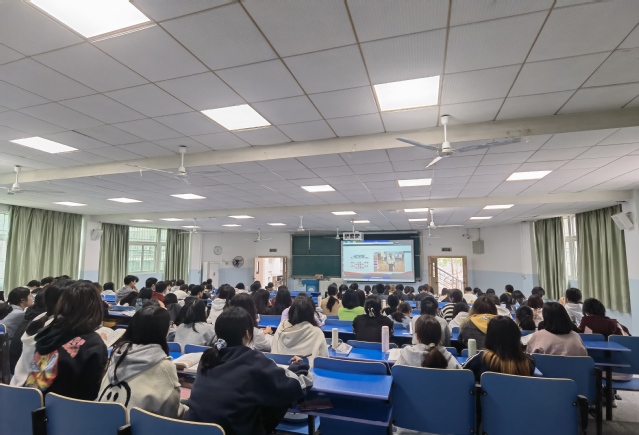 王文君围绕“以新发展理念引领高质量发展”为主题,着眼当前全球经济发展的大形势和中国经济长期向好的大势,从“为什么要提出新发展理念”“新发展理念‘新’在哪”“如何以新发展理念引领经济高质量发展”等方面内容进行深入讲解。同时,结合自身专业学习、工作经历和老员工成长发展实际,勉励同学们珍惜来之不易的学习机会,夯实专业基础,练就过硬本领,努力为全面建设社会主义现代化国家贡献智慧和青春力量。