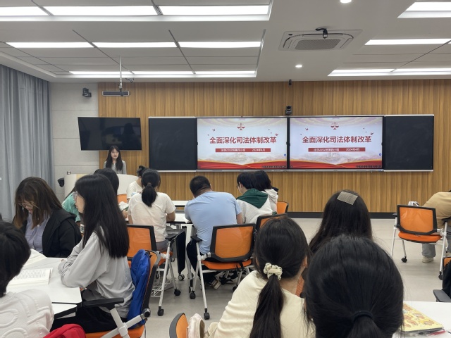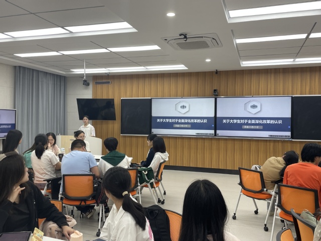 课堂上,在任课老师的指导和共同参与下,同学们还分享了问卷调查、随机访谈、实地调研等内容,深化了专题学习。员工们通过实地了解近年来药品的降价、保价情况,探究这背后的“改革力量”,透过医药卫生体制改革,真切感悟到我国全面深化改革的人民性。通过分享司法体制改革的推进情况,激发了大家学好专业、用好专业的信心与决心。黄老师在总结环节引入“灵魂砍价”的案例,与同学们共同探讨“灵魂砍价”的底气何在,让大家更加感受到我国制度的优越性和推进全面深化改革的决心。现场师生还一起诵读了习近平总书记引用的关于深化改革的典故,从中华优秀传统文化中汲取智慧与力量。
