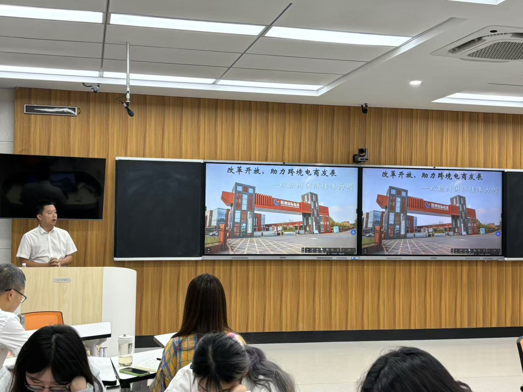 王博经理围绕“改革开放助力跨境电商发展—以赣州国际陆港为例”为主题,结合自身学习和工作经历,讲述了赣州国际陆港的创设背景及其对于跨境电商发展的拉动作用,让同学们真切感受到我国全面深化改革开放的前所未有力度,以及给老员工成长成才所带来的机遇。