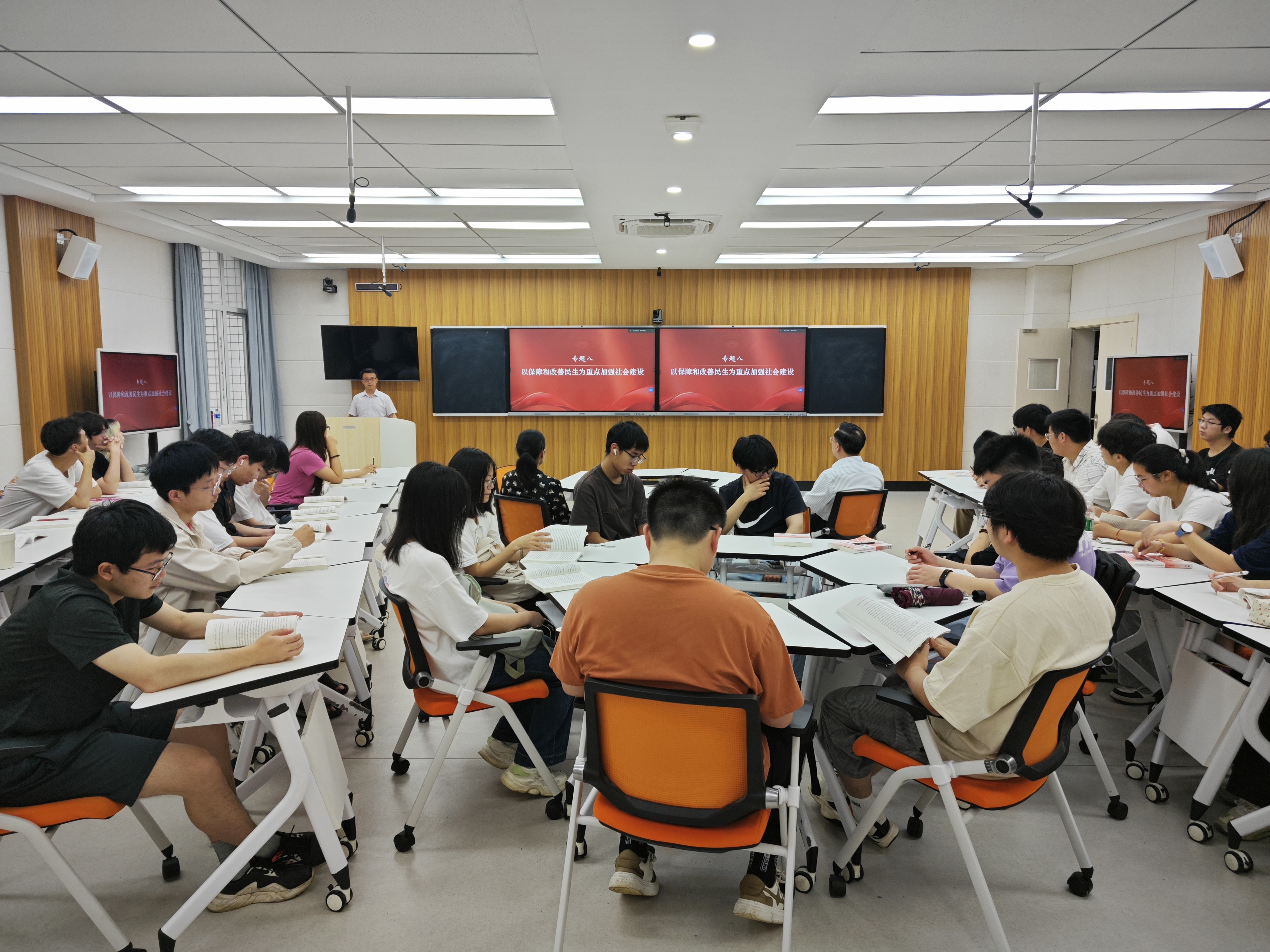 课程伊始,陈富国以“悠悠万事,民生为大”为切入点,系统梳理了习近平总书记关于民生问题的重要论述,通过中西对比分析,深入阐释中国共产党“人民至上”执政理念的深刻内涵。
