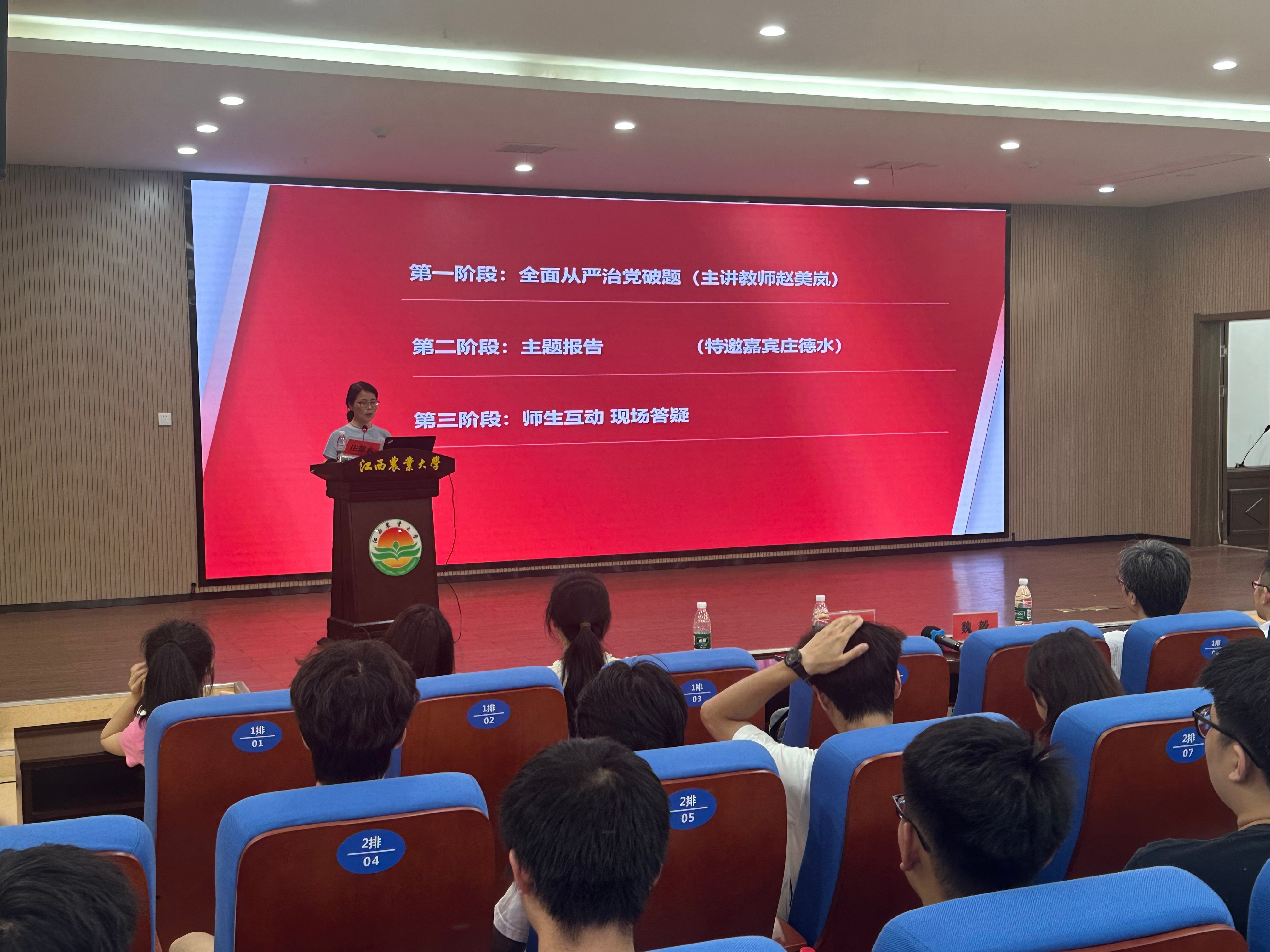 随后,庄德水以“坚定不移全面从严治党,深入推进新时代党的建设新的伟大工程”为题,进行了深入讲解及剖析。他指出,新时代坚持全面从严治党具有多重必然性。从长期执政的角度看,这是党应对各种风险挑战、保持长期执政地位的必然要求;从大党治理的层面讲,这是破解大党独有难题、确保党始终坚强有力的必然选择;从国家发展的大局出发,这更是推进中国式现代化这一历史主题的必然要求。庄德水的讲解,逻辑严谨、见解独到,让师生们对全面从严治党在新时代的战略地位和重大意义有了更为清晰、深刻的认识。