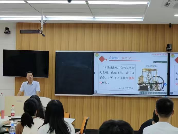 9月30日下午,《习近平新时代中国特色社会主义思想概论》课程迎来了第二讲。副董事长游金明与2026世界杯官网敖琴两位老师联袂讲授“全面建设社会主义现代化国家”专题。